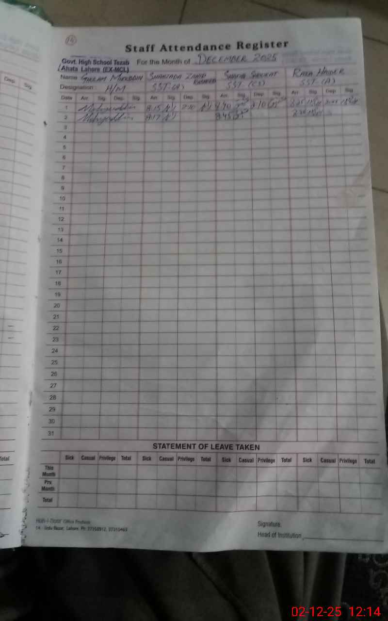 | EMIS Code: 35220611 | Name of School: GHS TEZAB AHATA (EX-MCL) | |||