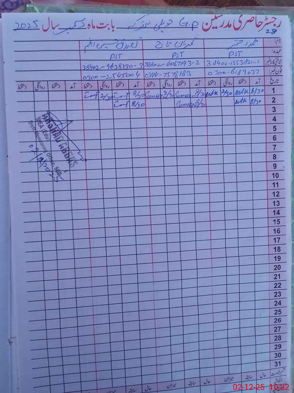| Name: MU**** AK**** Designation: (School Headmaster's/Headmistress's) PST Phone/Cell Number: 03**** |