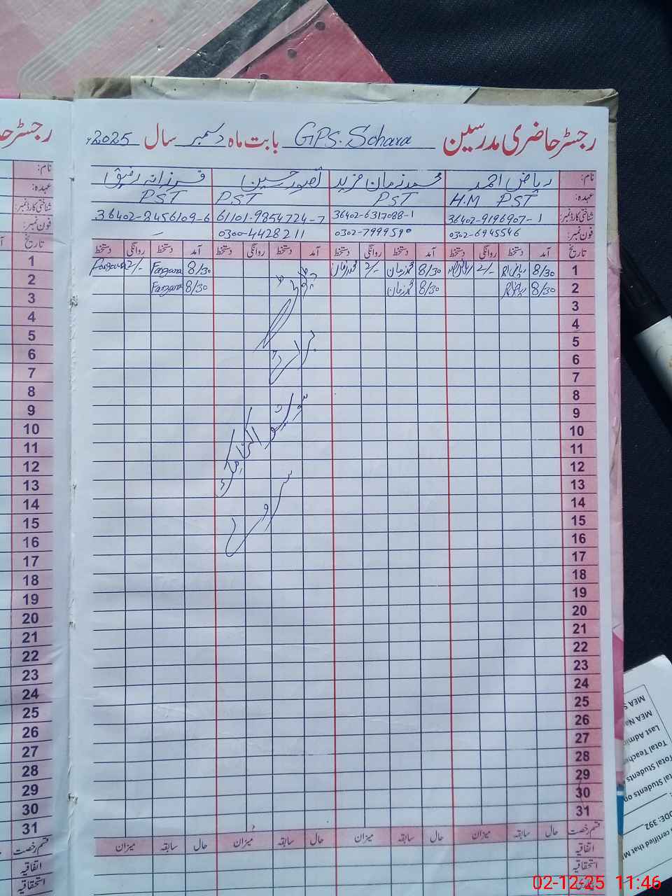 | Name: RI**** AH**** Designation: (School Headmaster's/Headmistress's) PST Phone/Cell Number: 03**** |