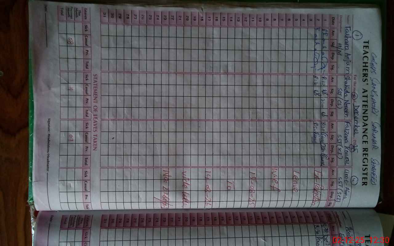 | 37**** | Az**** Za**** | Regular | 0 | 0 | 30 | 0 | 0 | 0 | 0 | 0 | 0 | Absent (Un-Authorized) | |