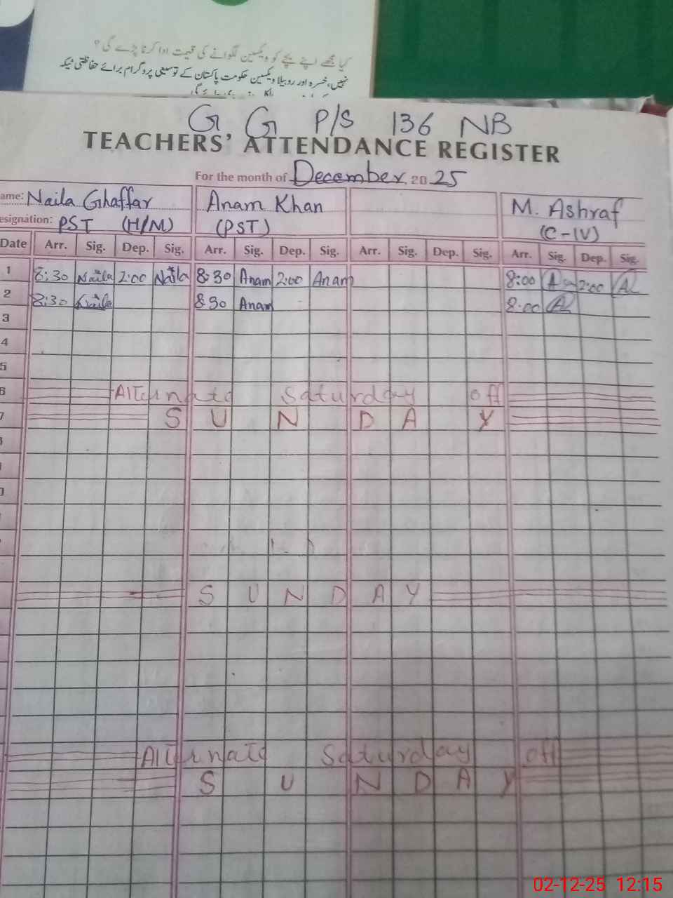 | Name: NA**** GH**** Designation: (School Headmaster's/Headmistress's) PST (SCI,MATH) Phone/Cell Number: 03**** |