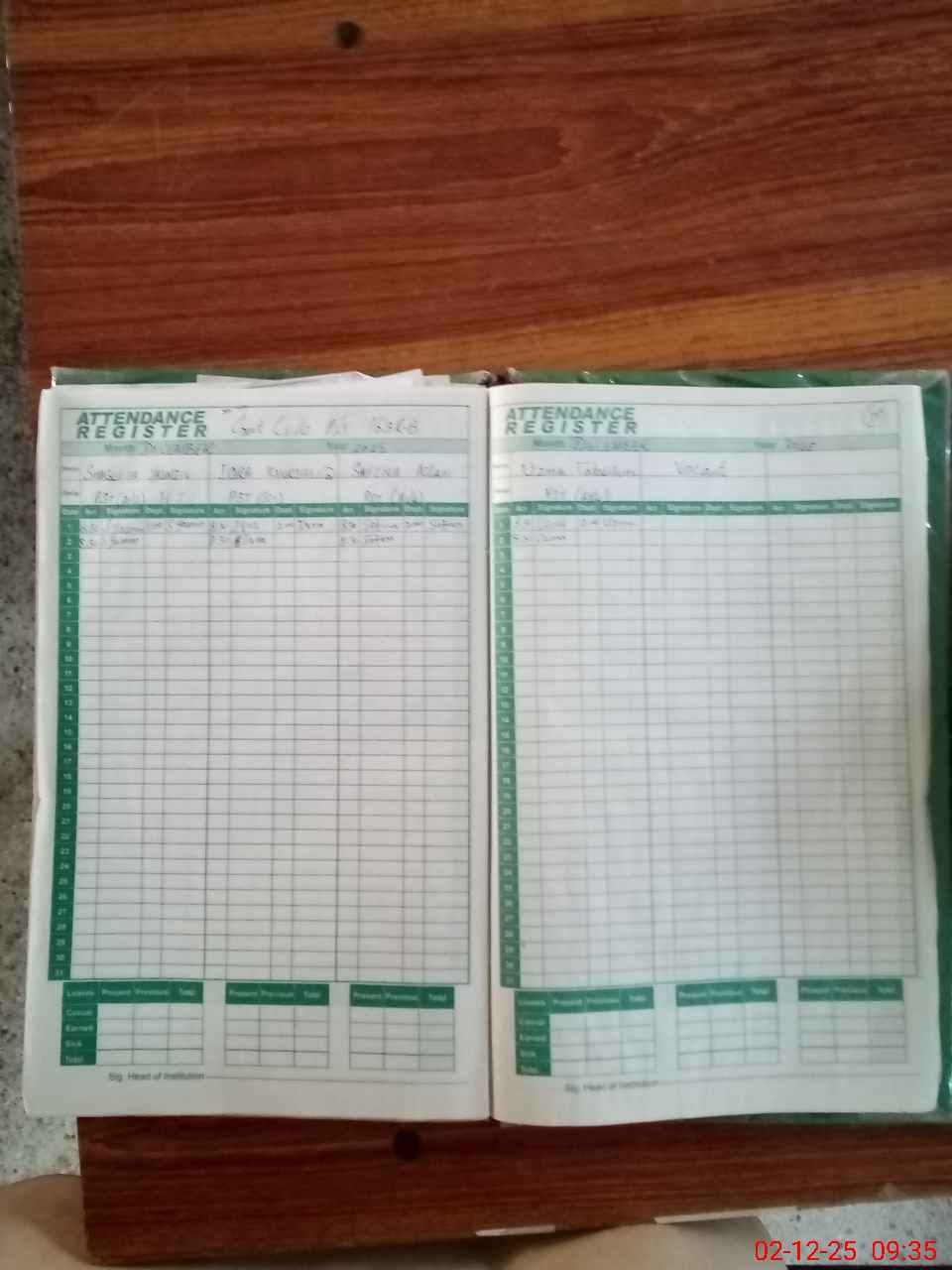 | Attendance Register | Head Teacher | MEA with School | Visit Proof |