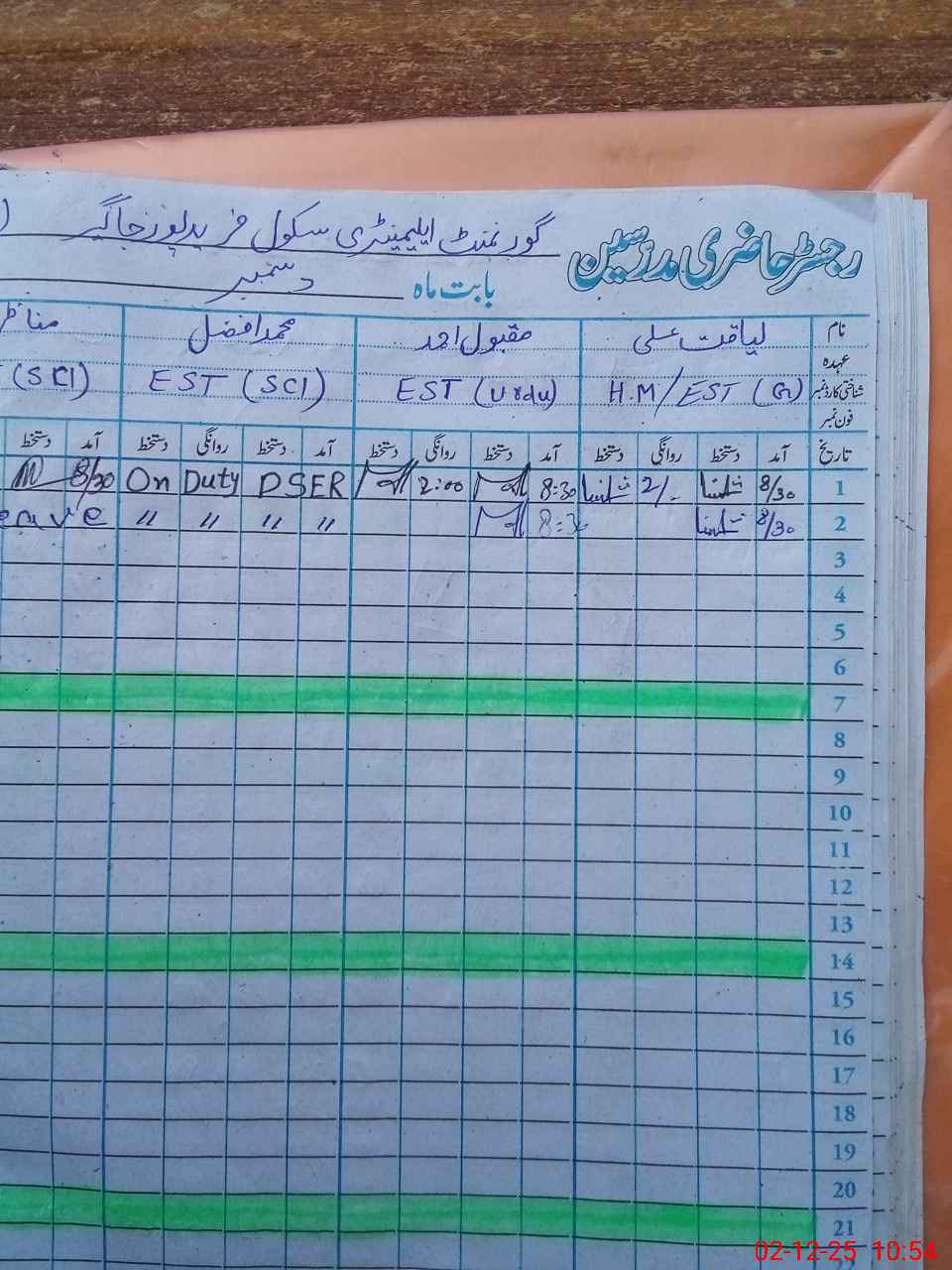 | CNIC | Full Name | Designation | R/C | Absence During Last Calender Month |