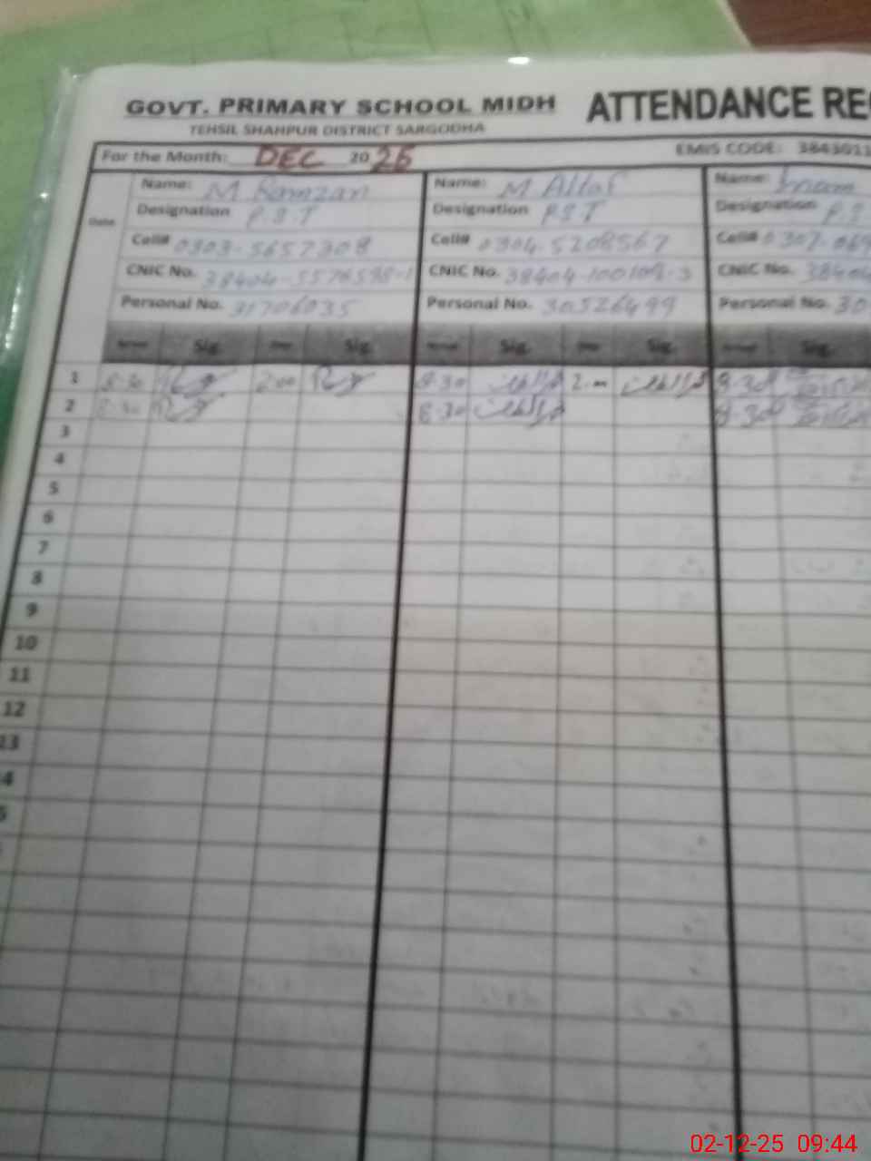 | Name: MU**** RA**** Designation: (School Headmaster's/Headmistress's) PST (SC MATH ) Phone/Cell Number: 03**** |