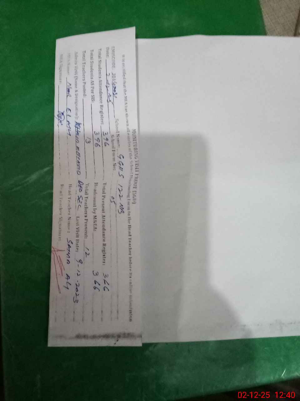 | Attendance Register | Head Teacher | MEA with School | Visit Proof |