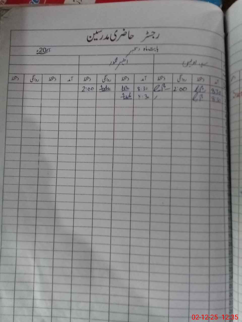 | CNIC | Full Name | Designation | R/C | Absence During Last Calender Month |