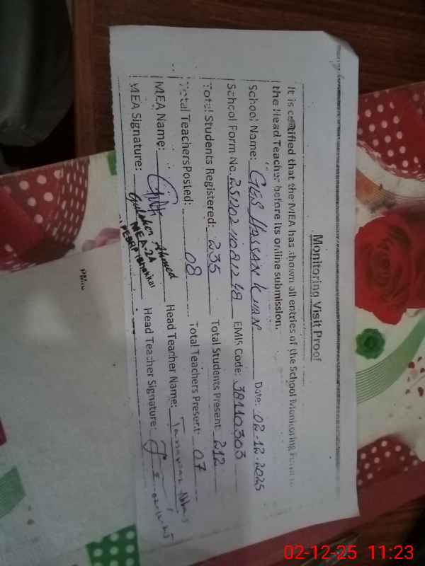 | Certified that this School was Inspected by the Undersigned MEA/DMO Today and the Information Stated Above is as Per Record. | |||||