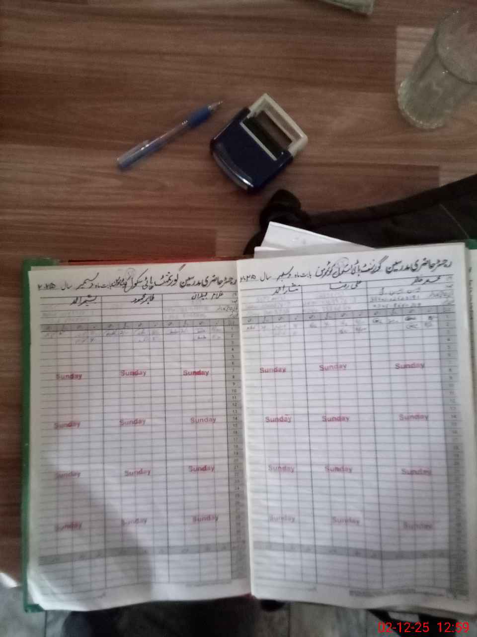 | CNIC | Full Name | Designation | R/C | Absence during last cal. month |