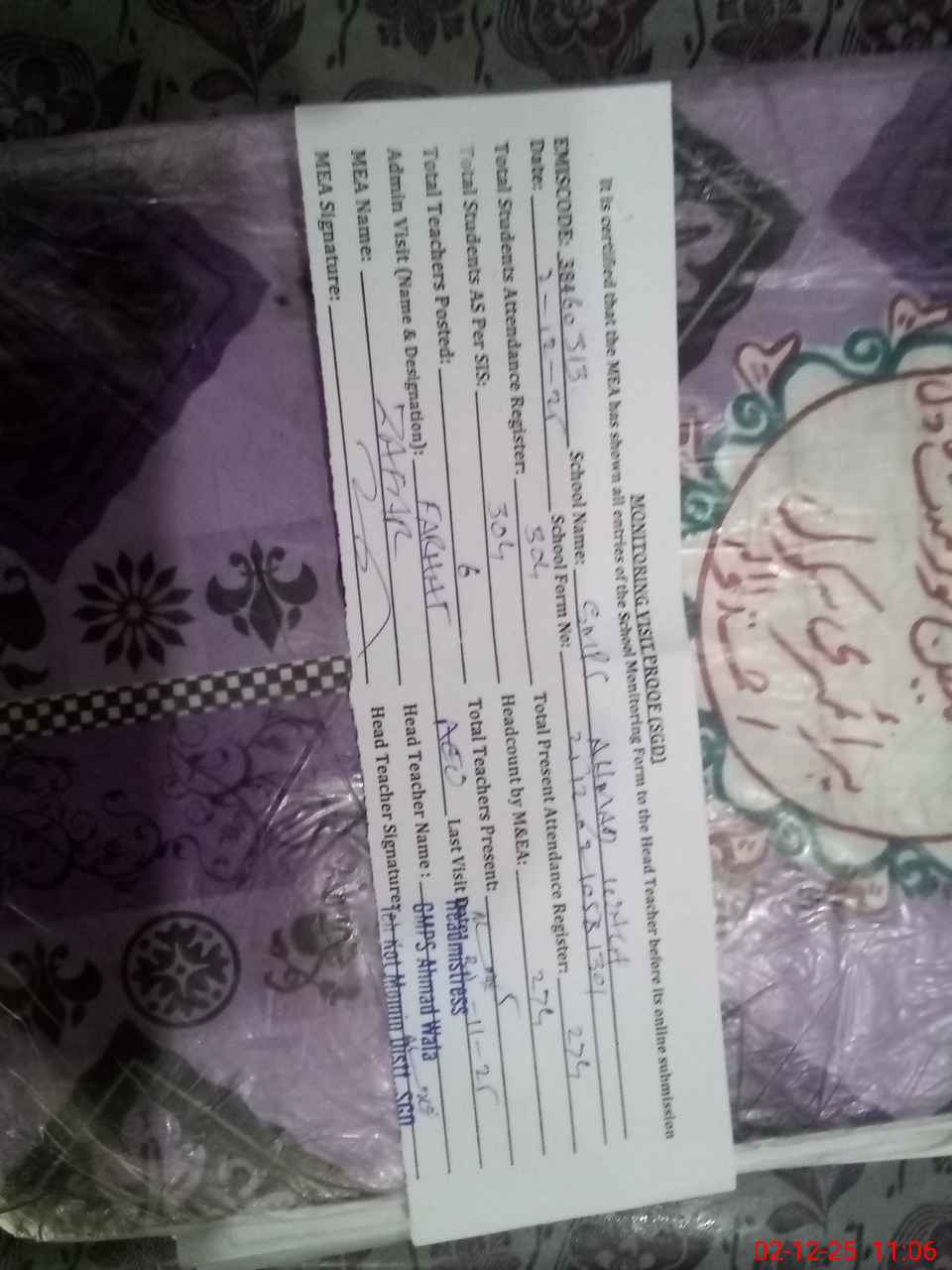 | Certified that this School was Inspected by the Undersigned MEA/DMO Today and the Information Stated Above is as Per Record. | |||||