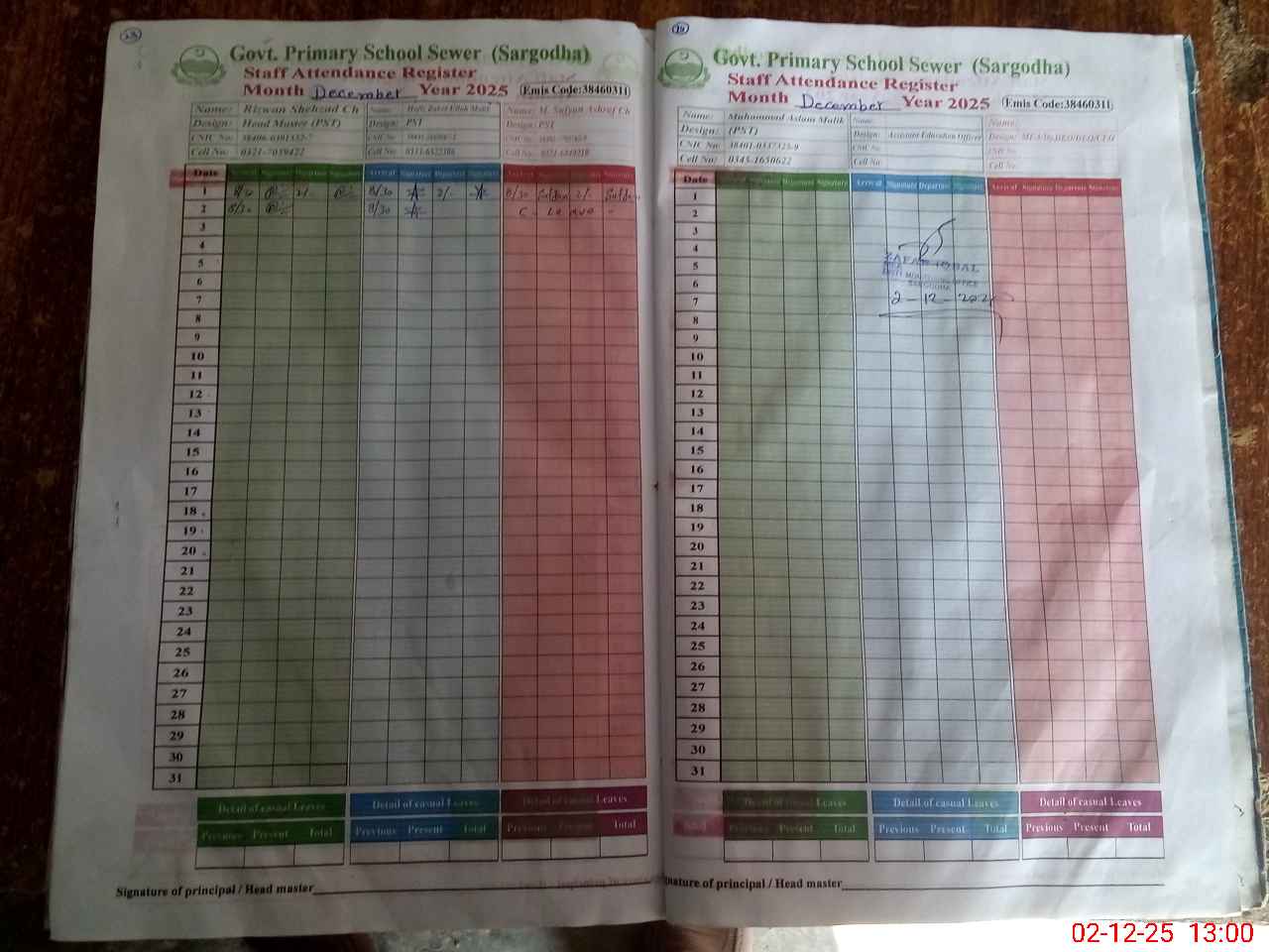 | Name: RI**** SH**** Designation: (School Headmaster's/Headmistress's) PST Phone/Cell Number: 03**** |