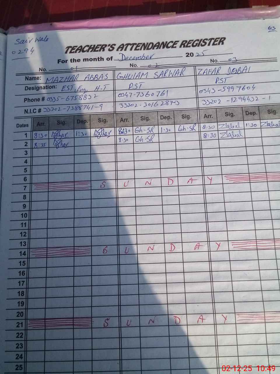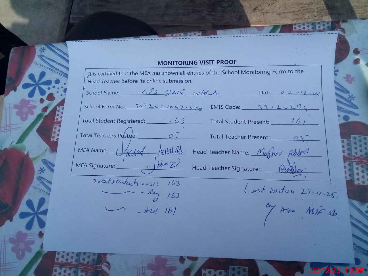 | EMIS Code: 33220294 | Name of School: GPS SAIR WALA | |||