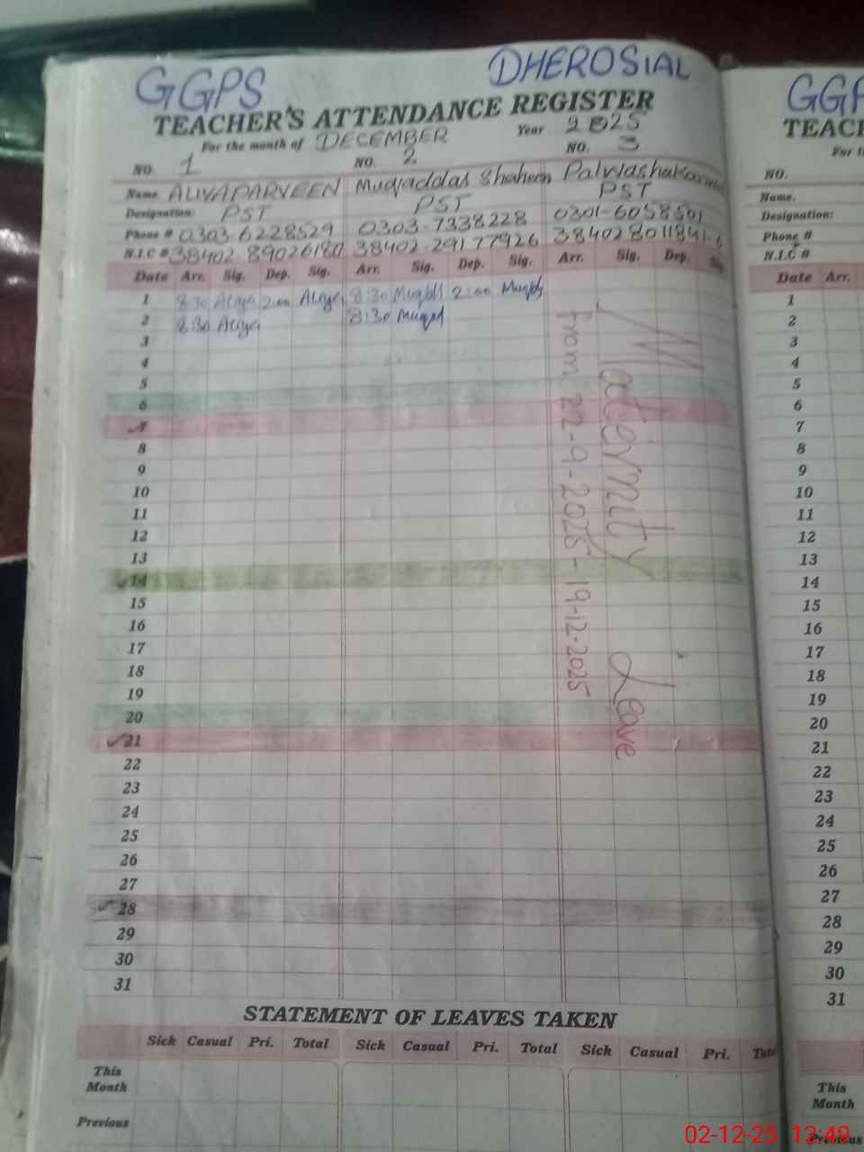 | 38**** | Pa**** Ka**** | Regular | 30 | 0 | 0 | 30 | 0 | 0 | 0 | 0 | 0 | Maternity | |
