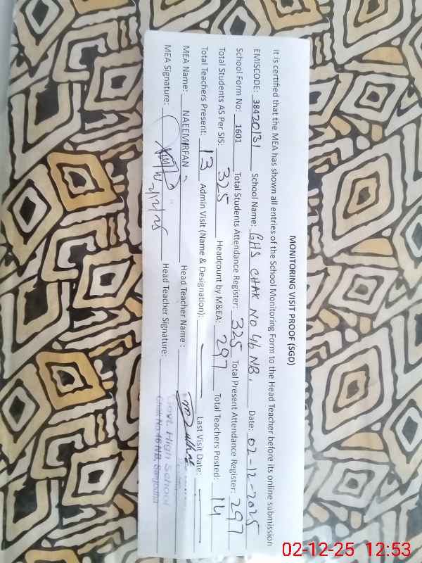 | EMIS Code: 38420131 | Name of School: GHS CHAK NO.46 NB | |||