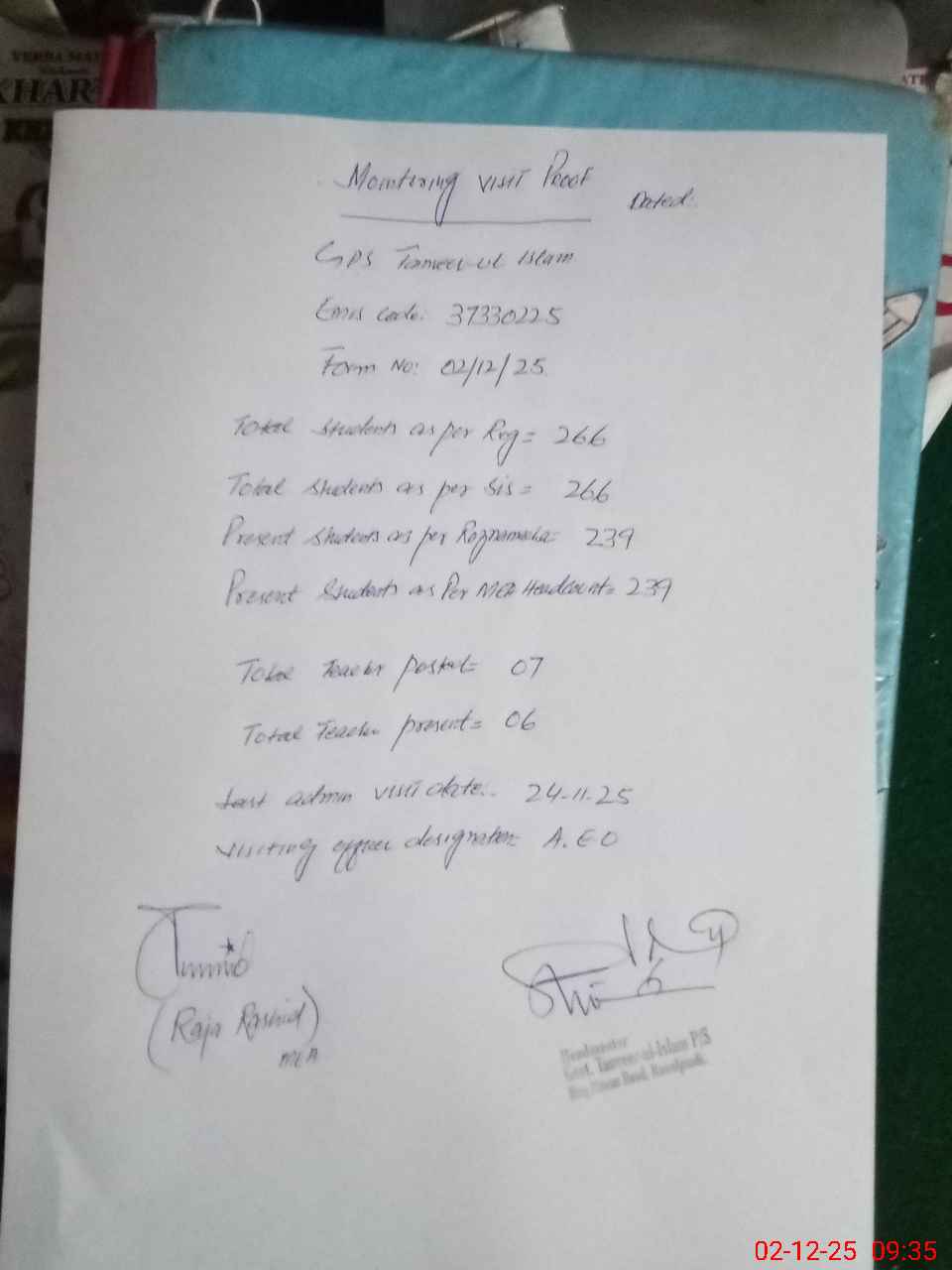 | EMIS Code: 37330225 | Name of School: GPS TANVEER-UL-ISLAM DHOKE HUKAM DAD RWP | |||
