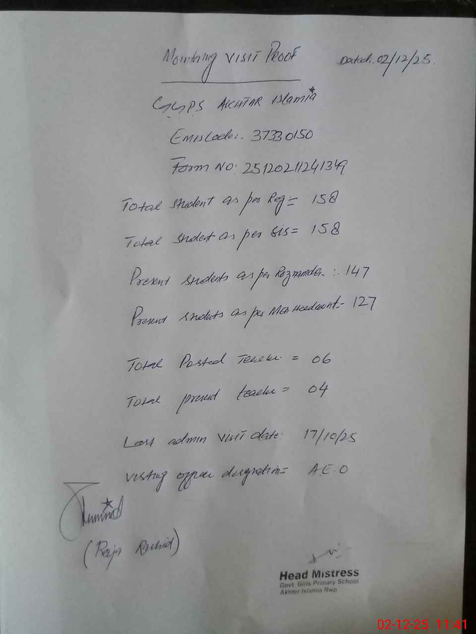| EMIS Code: 37330150 | Name of School: GGPS AKHTAR ISLAMIA | |||