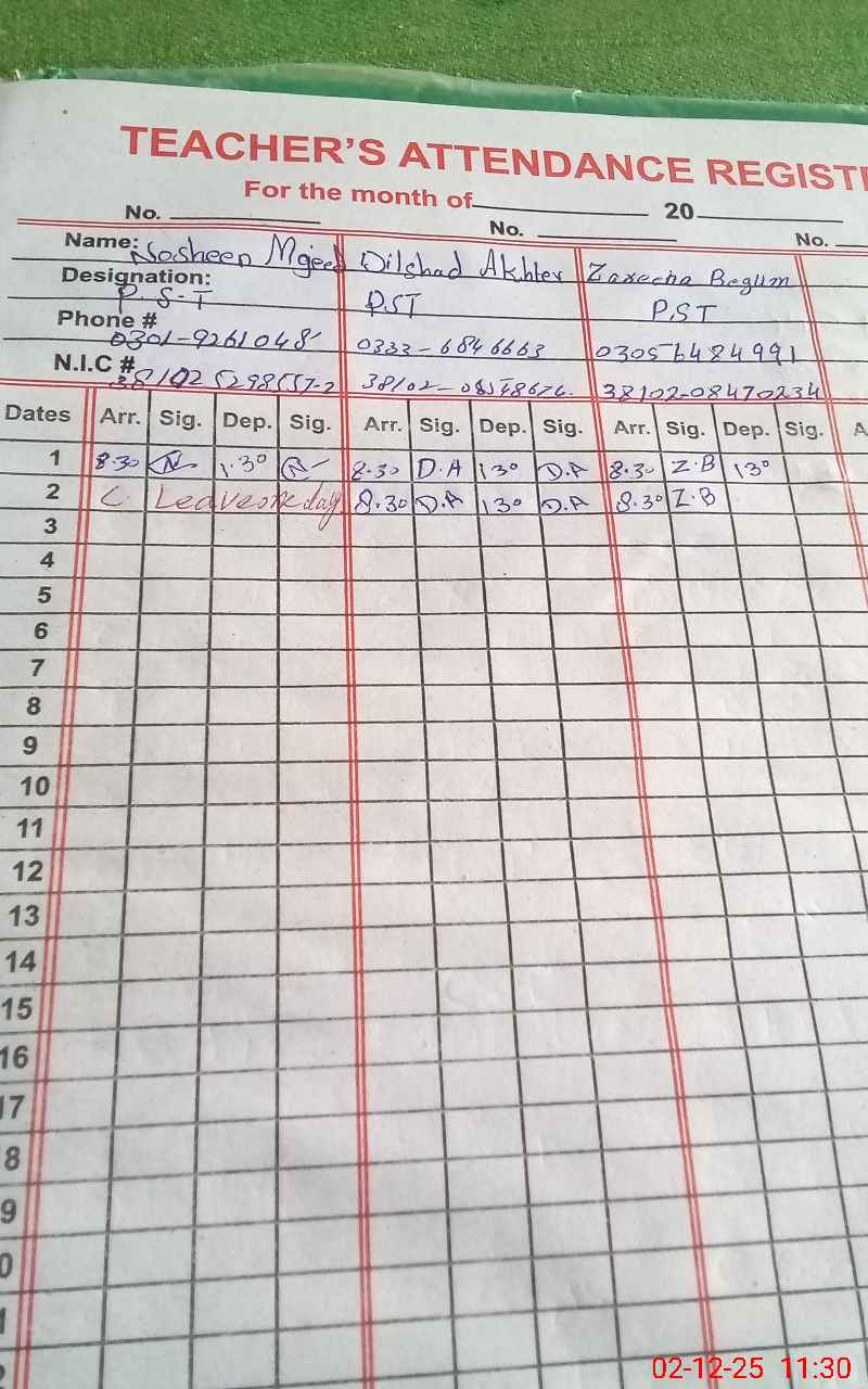 | Name: No**** Ma**** Designation: (School Headmaster's/Headmistress's) P S T Phone/Cell Number: 03**** |