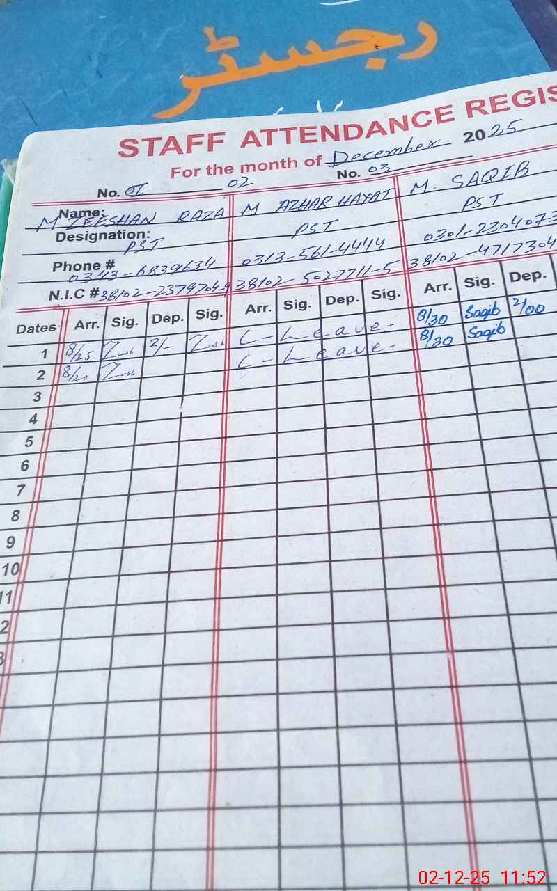 | Name: Ze**** Ra**** Designation: (School Headmaster's/Headmistress's) PST Phone/Cell Number: 03**** |