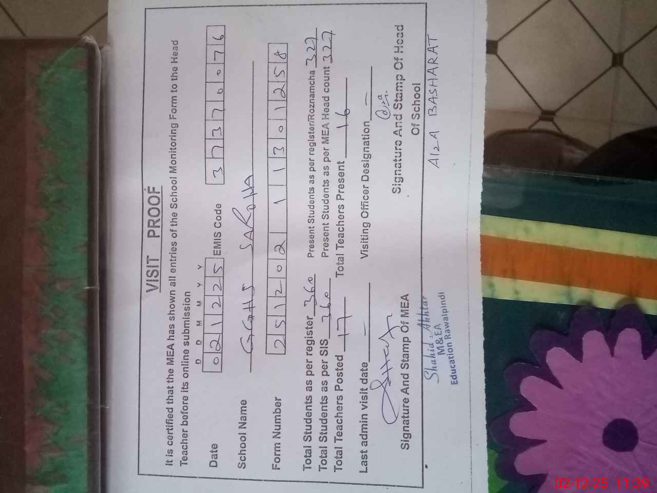 | Certified that this School was Inspected by the Undersigned MEA/DMO Today and the Information Stated Above is as Per Record. | |||||