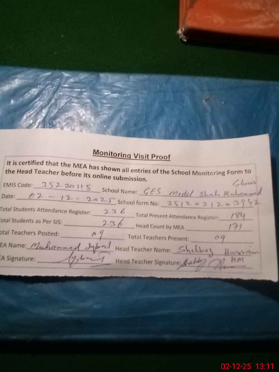 | Certified that this School was Inspected by the Undersigned MEA/DMO Today and the Information Stated Above is as Per Record. | |||||
