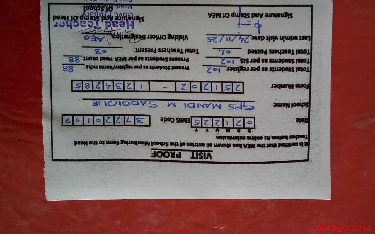 | Attendance Register | Head Teacher | MEA with School | Visit Proof |