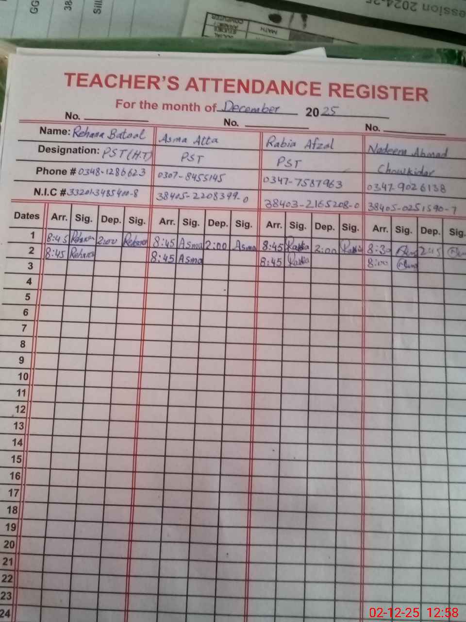 | Name: Re**** Ba**** Designation: (School Headmaster's/Headmistress's) PST Phone/Cell Number: 03**** |