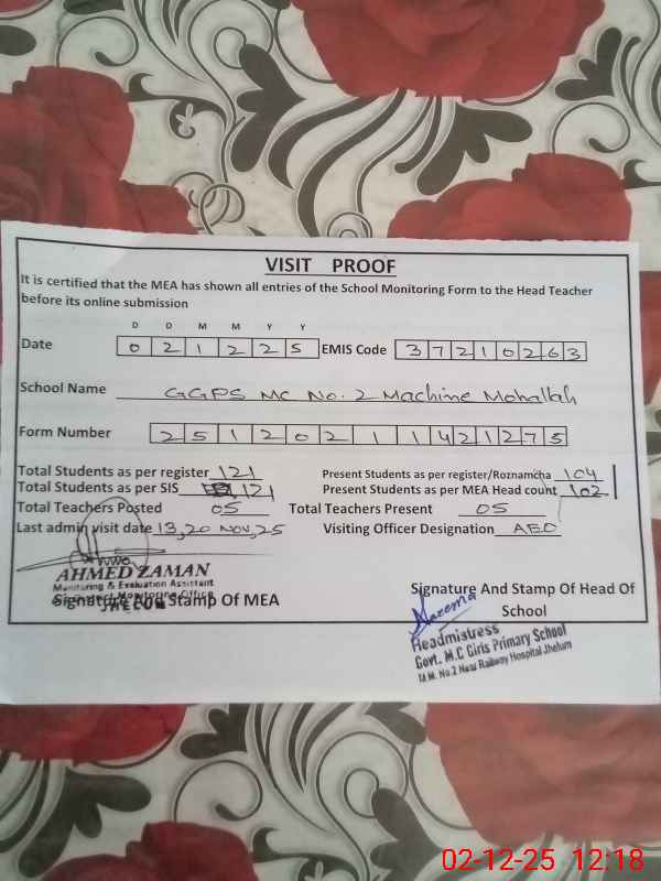 | EMIS Code: 37210263 | Name of School: GGPS MC NO. 2 MACHINE MOHALLAH | |||
