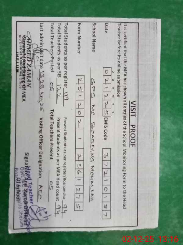 | EMIS Code: 37210157 | Name of School: GPS MC BOARDING MOHALLAH JHELUM | |||