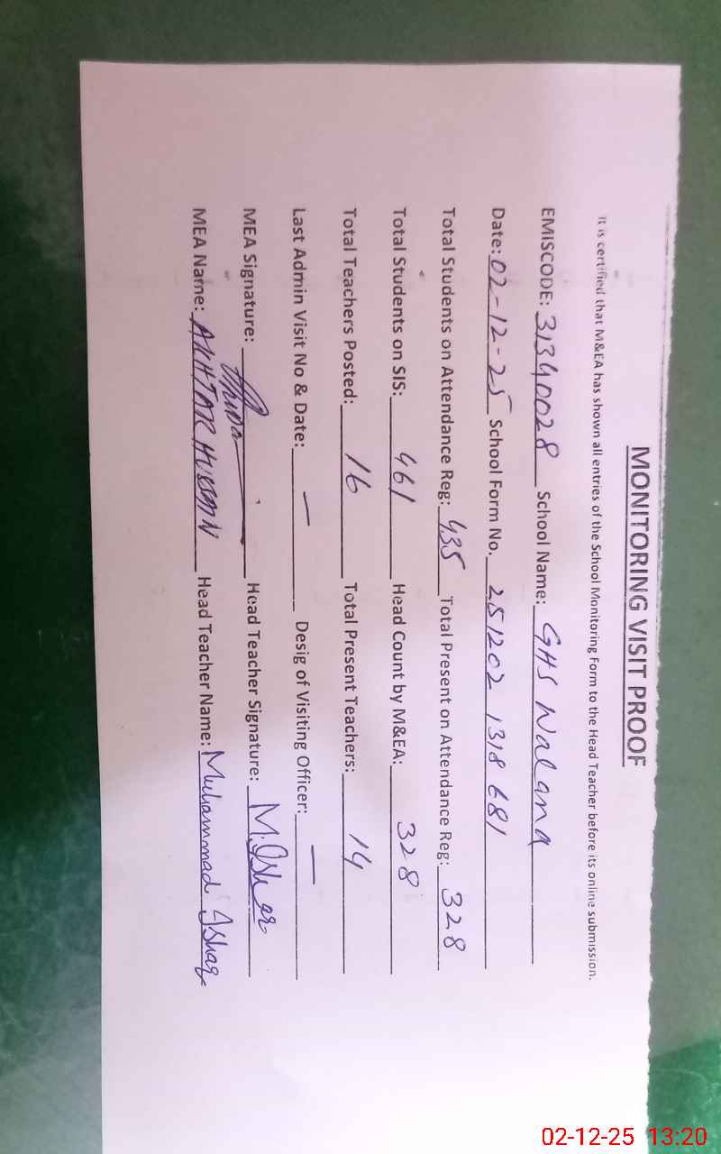 | EMIS Code: 31340028 | Name of School: GHS WALANA | |||