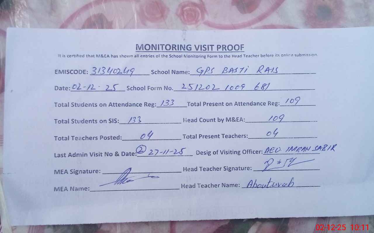 | EMIS Code: 31340249 | Name of School: GPS BASTI RAIS | |||