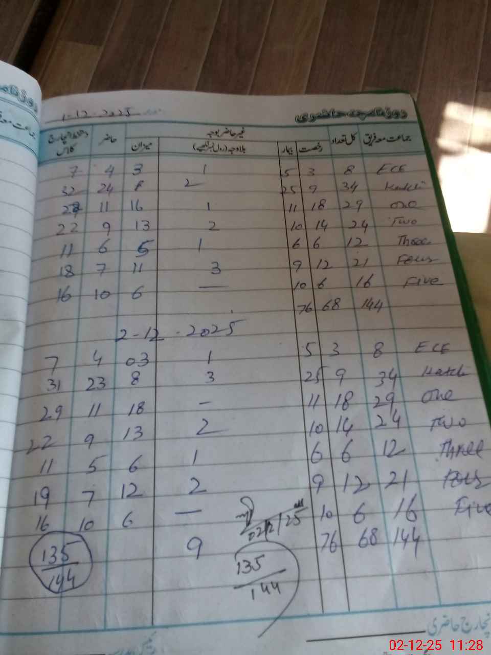 | Total Students Present | 0 | 7 | 29 | 22 | 11 | 19 | 16 | 135 | ||||||||