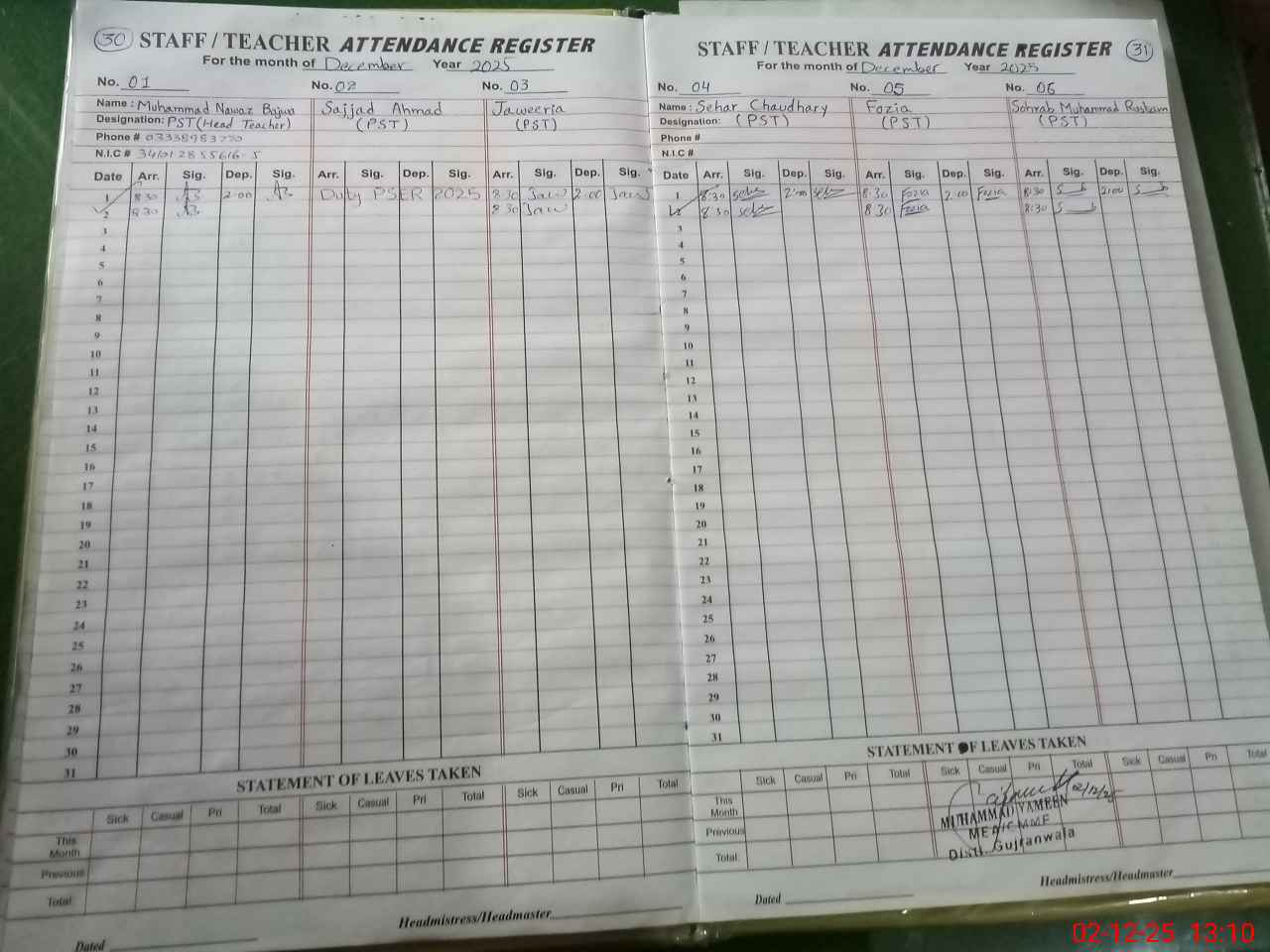 | Name: M.NA**** BA**** Designation: (School Headmaster's/Headmistress's) PST Phone/Cell Number: 03**** |