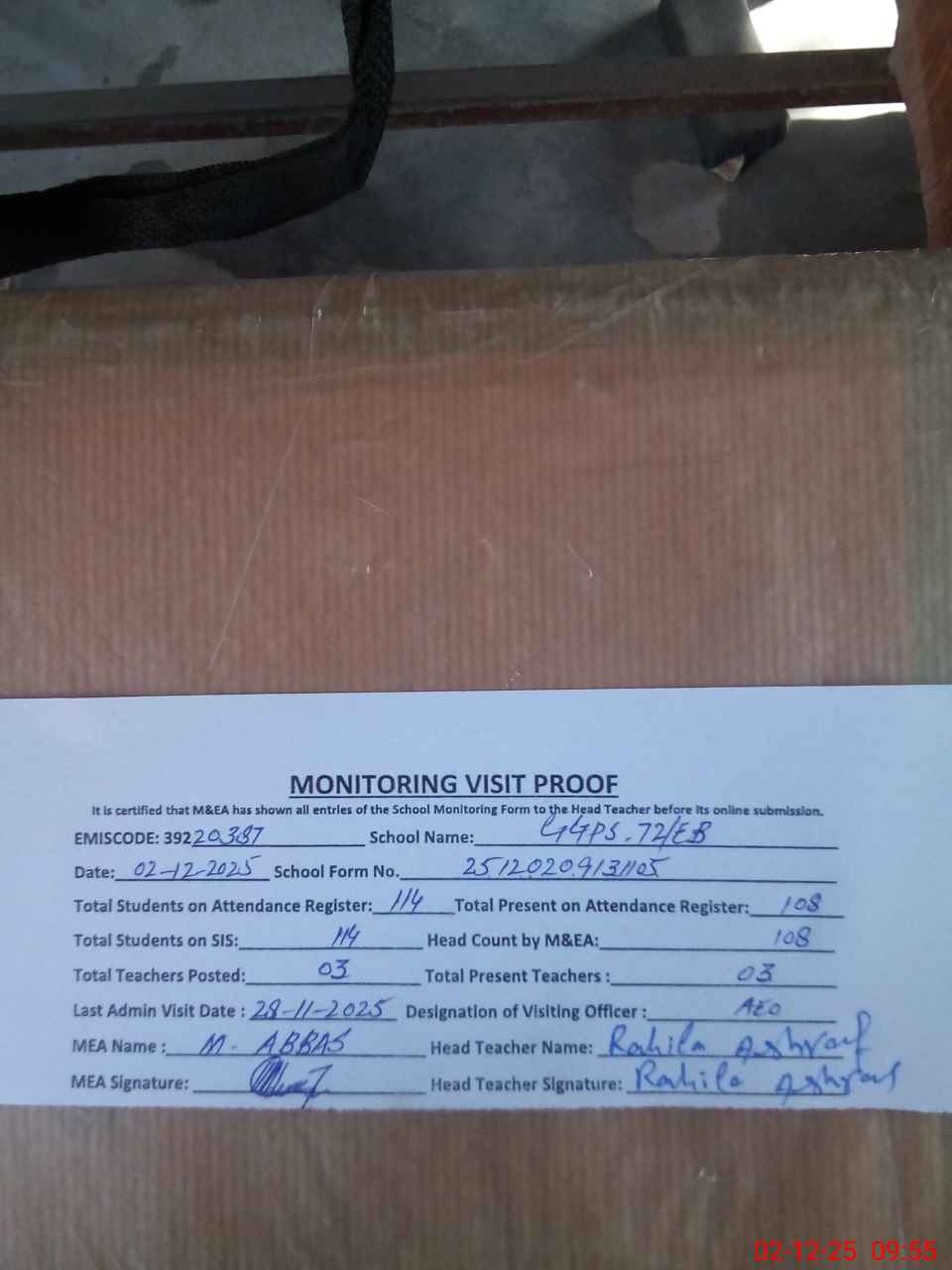 | EMIS Code: 39220387 | Name of School: GGPS 72 EB MUHAMMAD NAGAR ARIFWALA | |||
