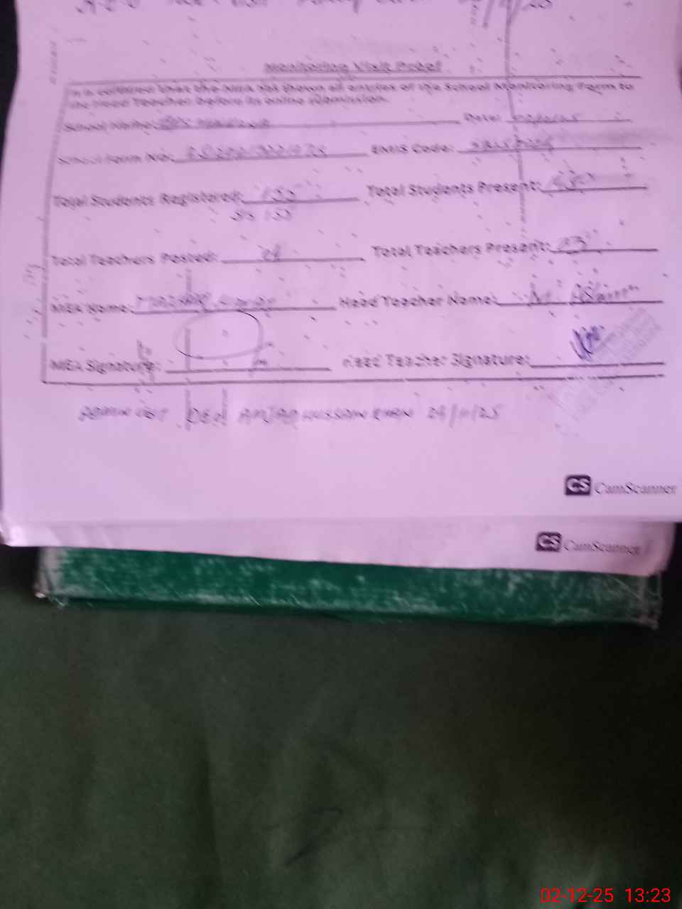 | Attendance Register | Head Teacher | MEA with School | Visit Proof |