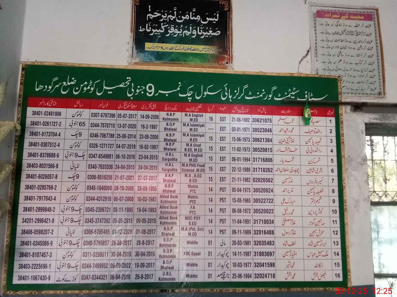 | EMIS Code: 38460587 | Name of School: GGHS CHAK NO.9 SB | |||