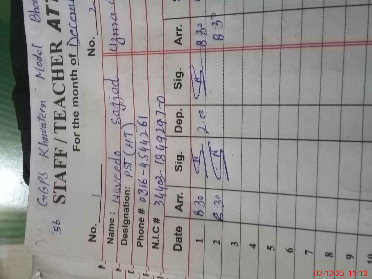 | Name: NA**** SA**** Designation: (School Headmaster's/Headmistress's) Head Mistress Phone/Cell Number: 03**** |