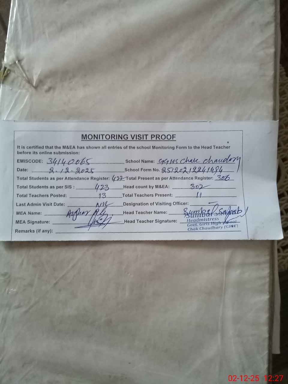 | EMIS Code: 34140065 | Name of School: GGHS CHAK CHAUDHARY | |||