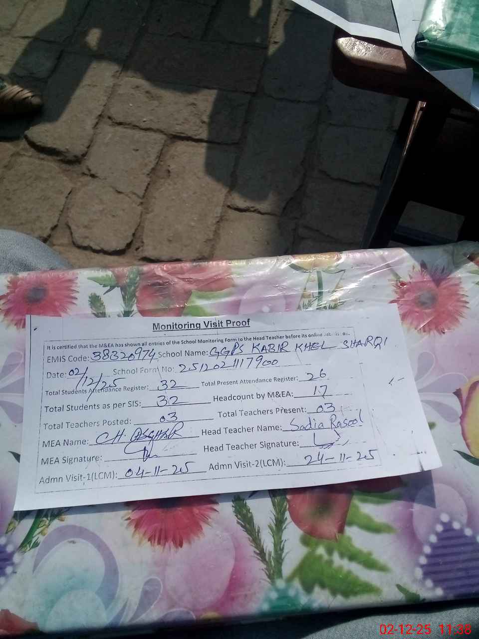 | EMIS Code: 38320974 | Name of School: GGPS KABIR KHEL SHARQI MOCHH | |||