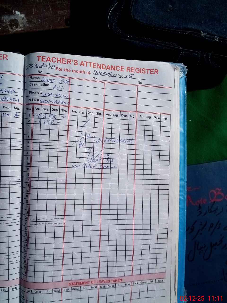 | Name: AB**** GH**** Designation: (School Headmaster's/Headmistress's) PST Phone/Cell Number: 03**** |