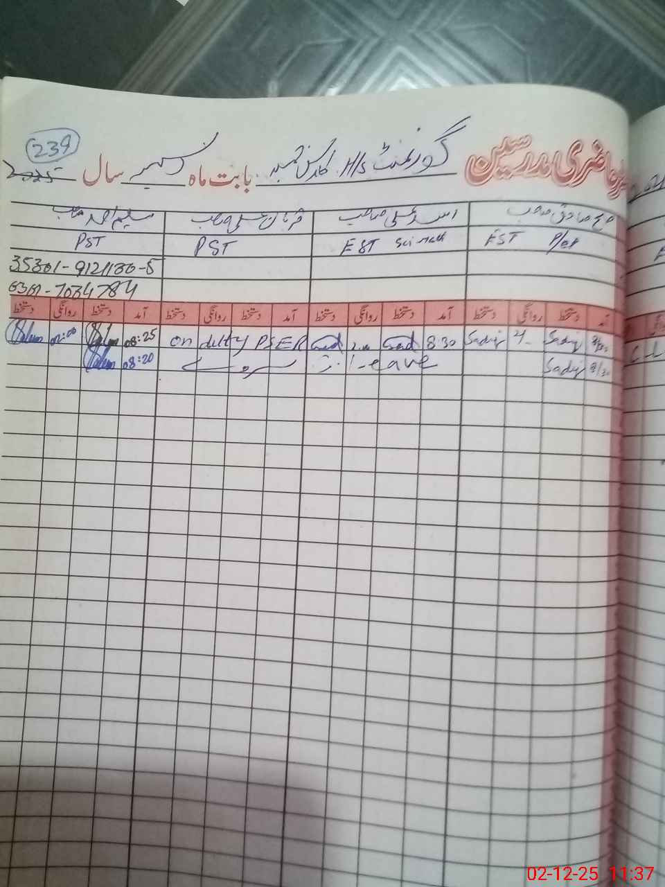 | CNIC | Full Name | Designation | R/C | Absence During Last Calender Month |