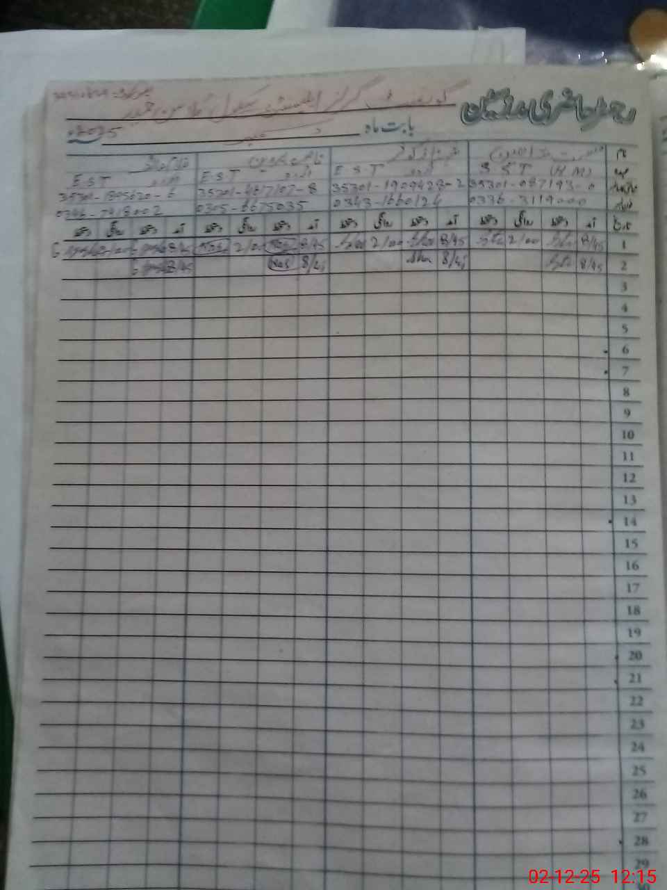 | CNIC | Full Name | Designation | R/C | Absence During Last Calender Month |