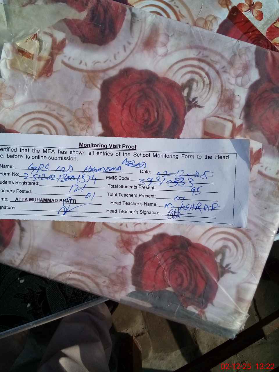 | Name: MU**** AS**** Designation: (School Headmaster's/Headmistress's) PST Phone/Cell Number: 03**** |