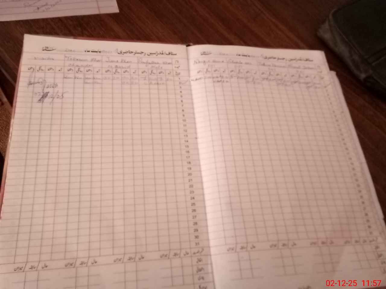 | CNIC | Full Name | Designation | R/C | Absence During Last Calender Month |