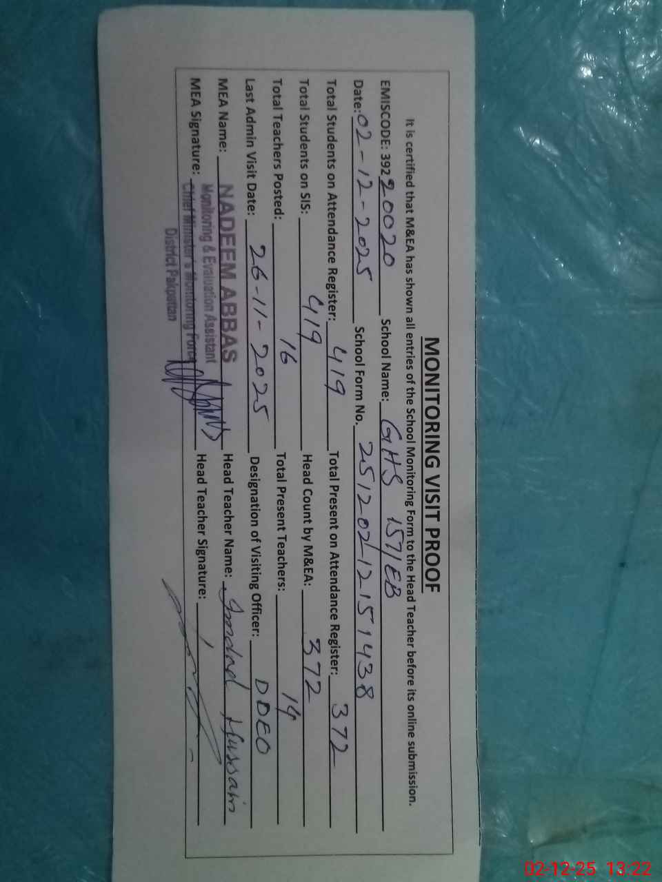 | EMIS Code: 39220020 | Name of School: GHS 157/EB | |||