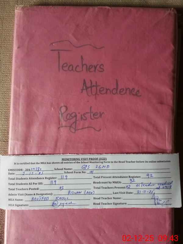 | EMIS Code: 38410180 | Name of School: GPS CHAK NO.26 NB | |||