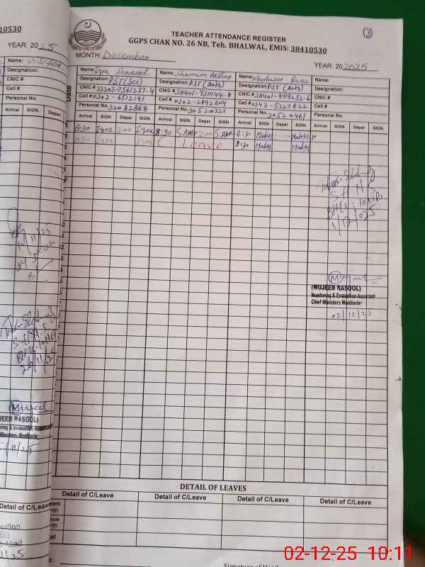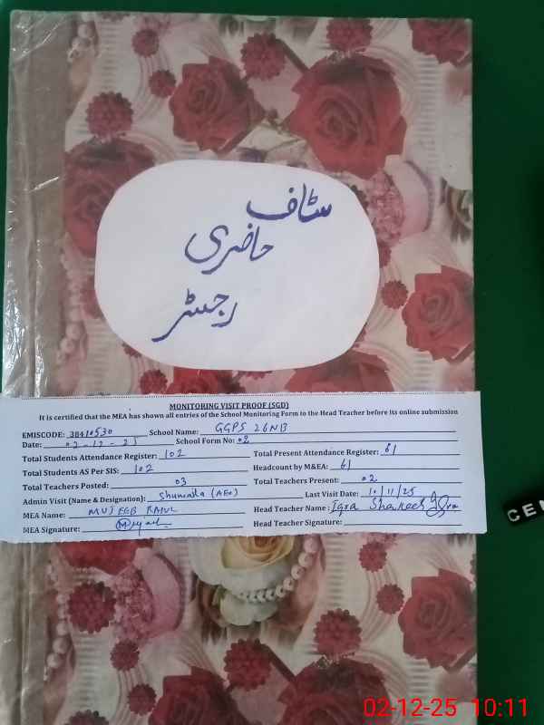 | EMIS Code: 38410530 | Name of School: GGPS CHAK NO.26 NB | |||