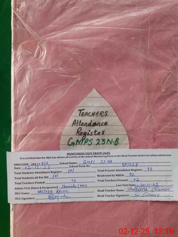 | EMIS Code: 38410532 | Name of School: GMPS CHAK NO.23 NB | |||