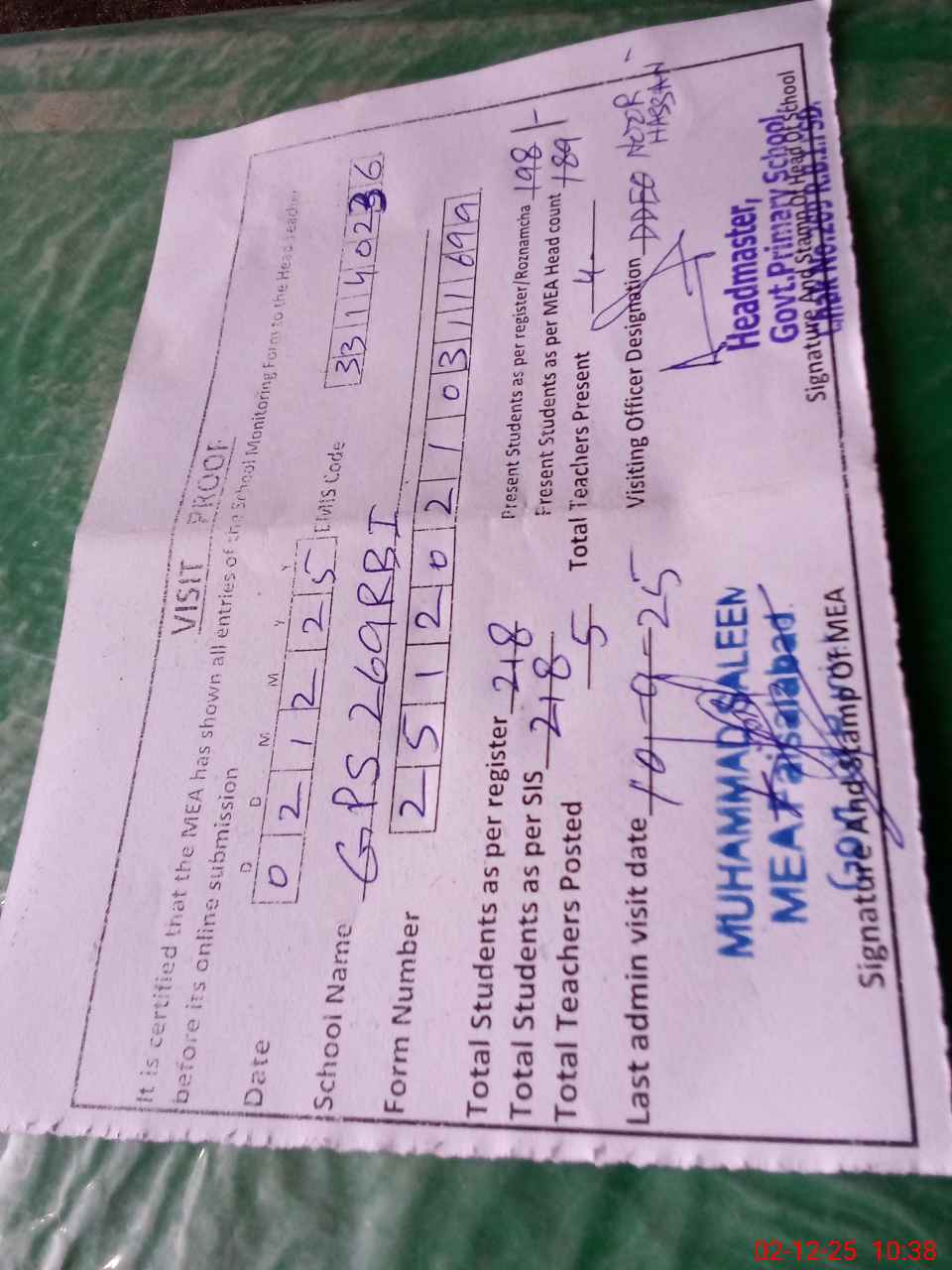 | Certified that this School was Inspected by the Undersigned MEA/DMO Today and the Information Stated Above is as Per Record. | |||||