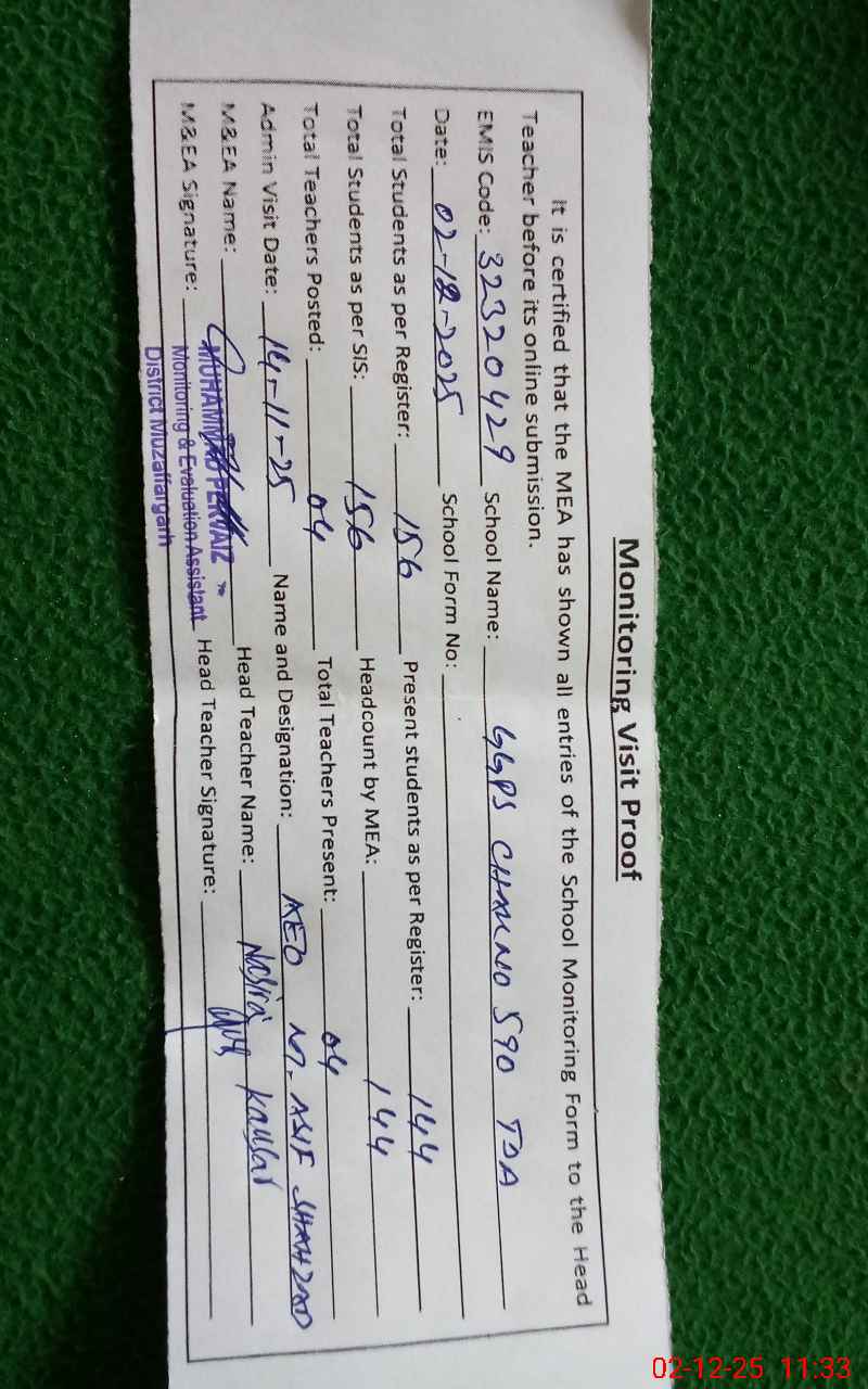 | EMIS Code: 32320429 | Name of School: GGPS CHAK NO. 590 TDA | |||