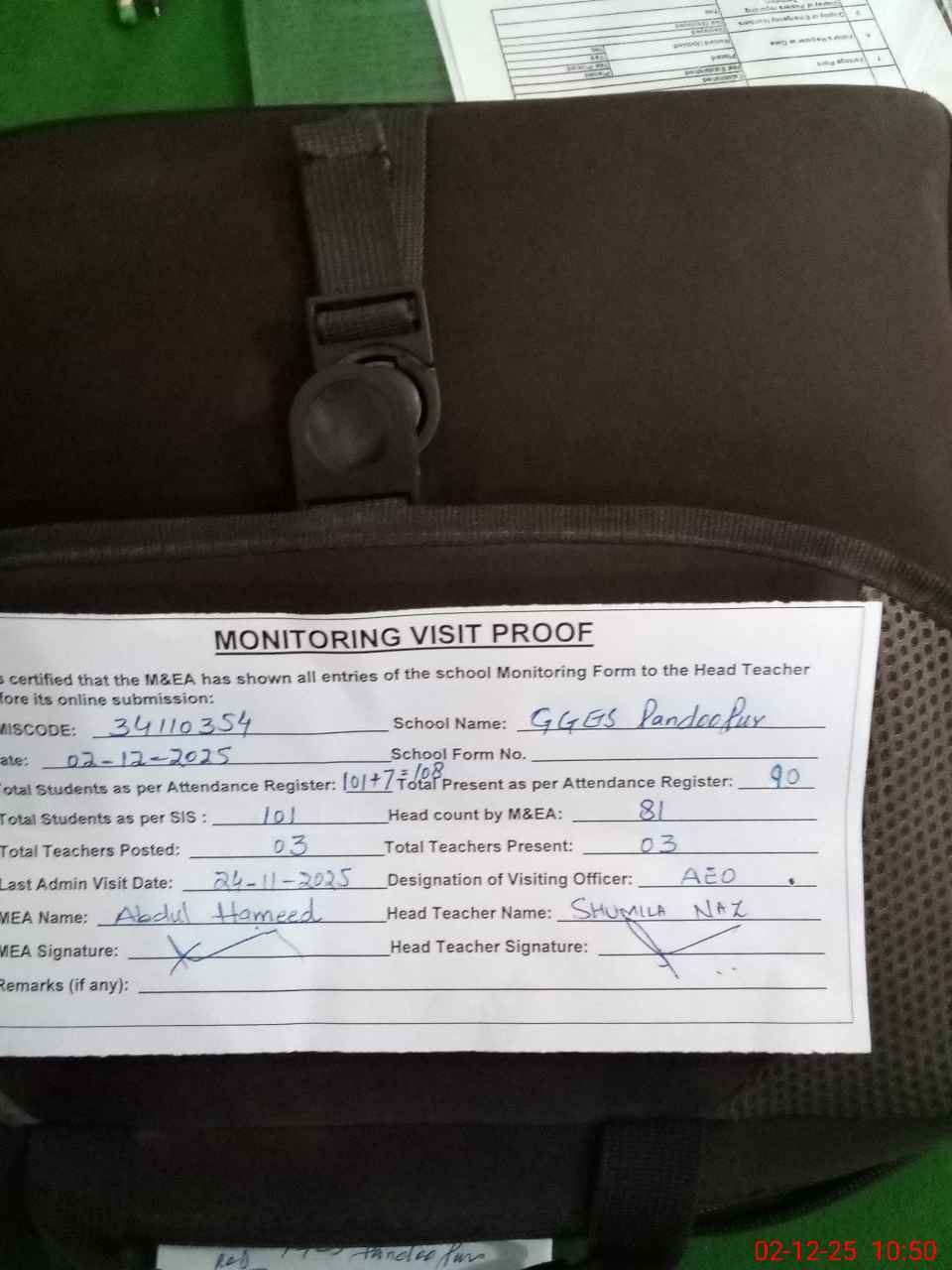 | Certified that this School was Inspected by the Undersigned MEA/DMO Today and the Information Stated Above is as Per Record. | |||||