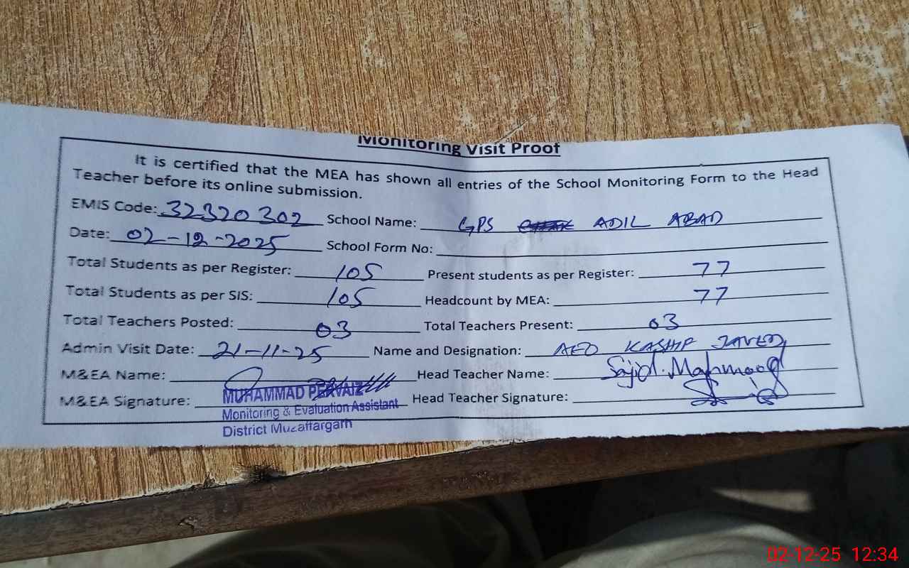 | EMIS Code: 32320302 | Name of School: GPS ADIL ABAD | |||